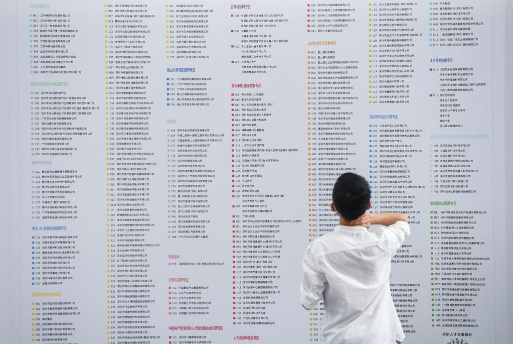 ▲4月24日,在中国国际人才交流大会“精英天下”中高级人才招聘会上,应聘者在查看企业名录。新华社记者 毛思倩 摄