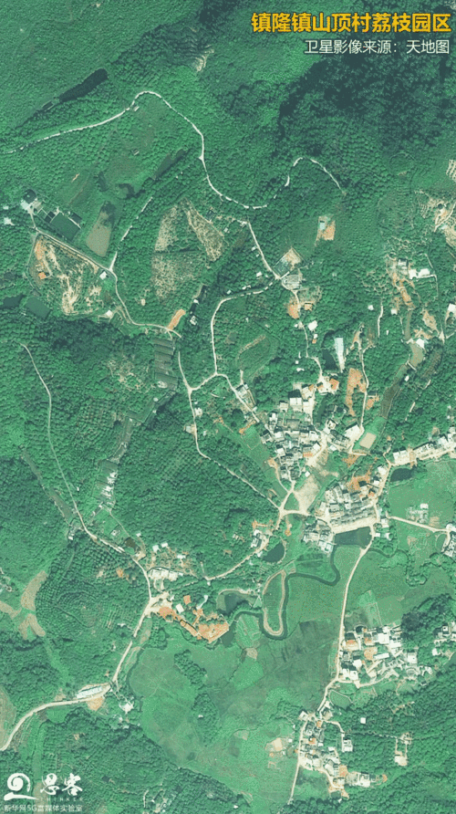 镇隆镇山顶村荔枝产业园。卫星影像来源:天地图
