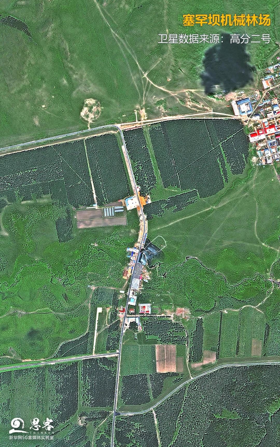 ▲卫星视角下的塞罕坝机械林场,一排排整齐的机械林分布其间。卫星数据来源:高分二号