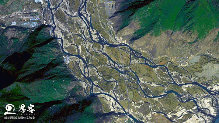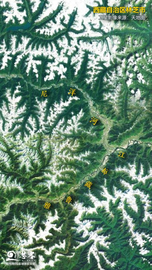 卫星视角下的尼洋河辫状水系。卫星影像来源:天地图