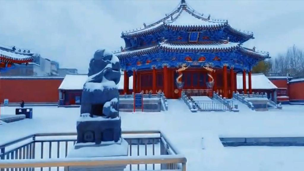 11月7日晚,沈阳市迎来2021年入冬第一场雪。银装素裹之下,沈阳故宫博物院换上了一身“冬装”。