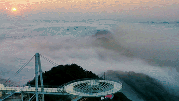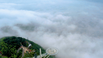 近日,在湖北阳新仙岛湖出现绝美云瀑景观。从空中俯瞰,流动的云雾如天河倾泻,蔚为壮观。