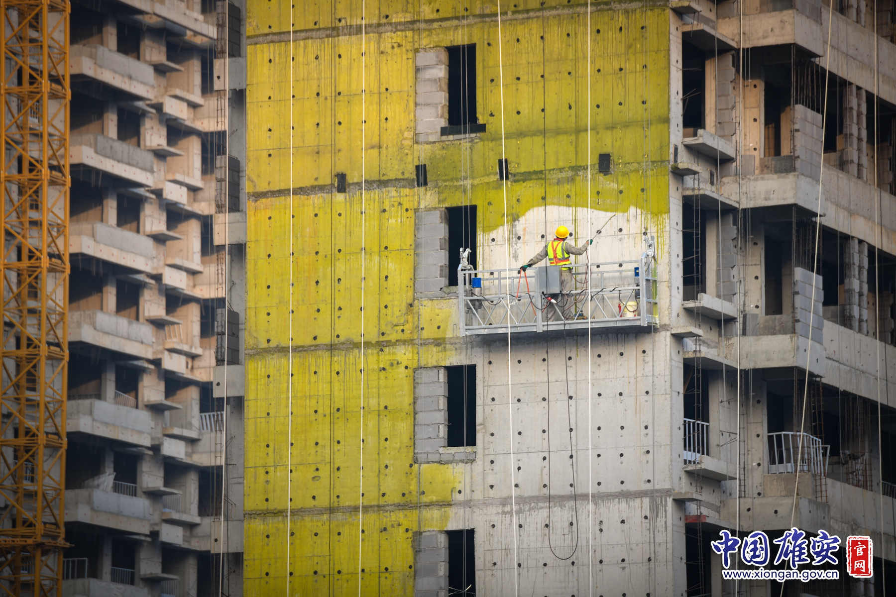 2021年11月,雄安新区容西片区安置房建设项目现场,建设者在紧张施工。任双欢 摄