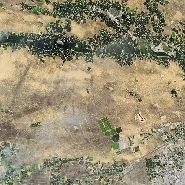 ▲卫星视角下的包兰铁路。图片来源:新华社