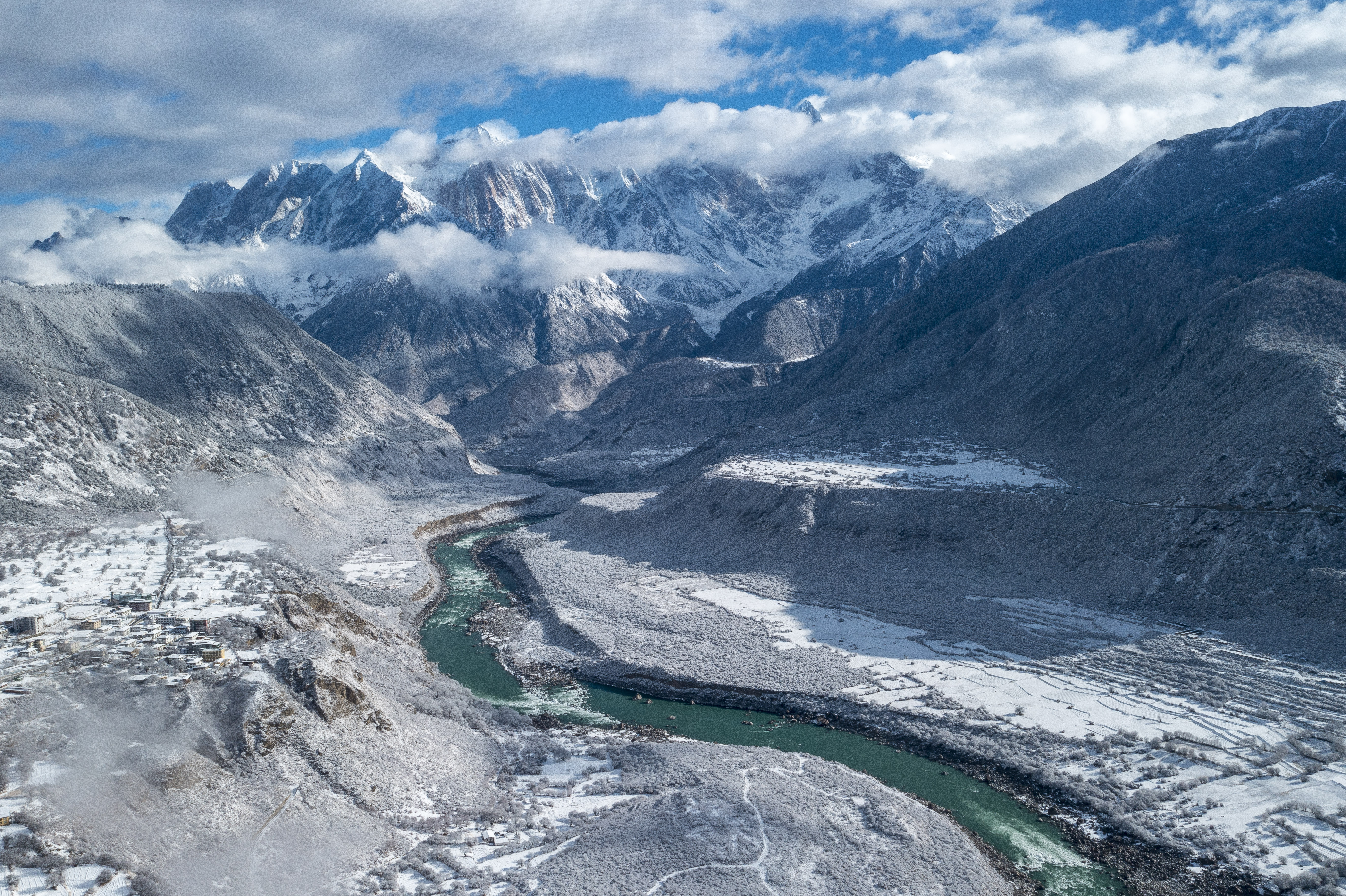 雅鲁藏布大峡谷雪景(无人机照片)。新华社发(董志雄 摄)