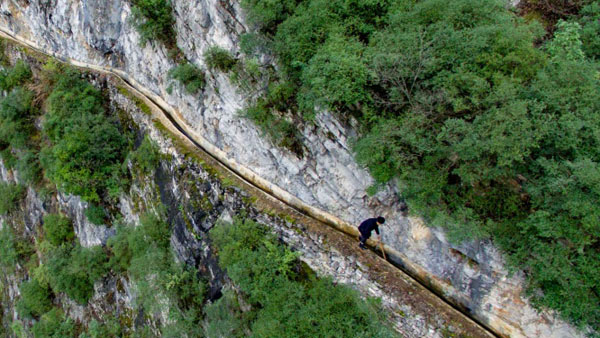 修建水渠要经过3座大山、大小9个悬崖、10多处峻岭,大土湾岩、擦耳岩和灰洞岩最为险要,要从悬崖峭壁上打出半幅隧道才能通过。