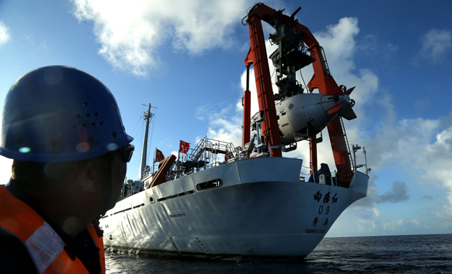 当地时间7时09分,“蛟龙”号布放入水。11分钟后,“蛟龙”号潜向深海。本次下潜主驾驶和副驾驶,分别由有着60多次下潜经历的“潜航英雄”唐嘉陵和深潜过10次的刘晓辉担任。