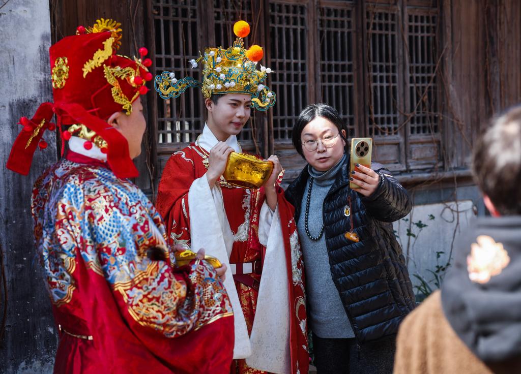 春节假期,浙江省桐乡市濮院时尚古镇推出“马上有福·濮院时尚中国年”春节特别主题活动,以“宋韵”为底色,将传统年俗转化为可沉浸、可参与、可消费的当代生活体验,串联起非遗、美食、游戏、科技、艺术多种元素,日均推出40余场演绎互动,邀约广大游客穿越古今,体验一场融合宋朝宋韵与时尚风潮的新年。
