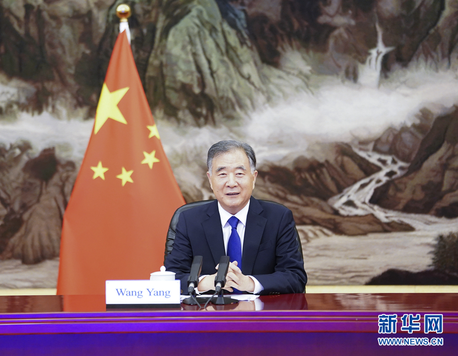 6月29日,中共中央政治局常委、全国政协主席汪洋在北京以视频方式会见老挝人民革命党中央政治局委员、建国阵线中央主席辛拉冯。