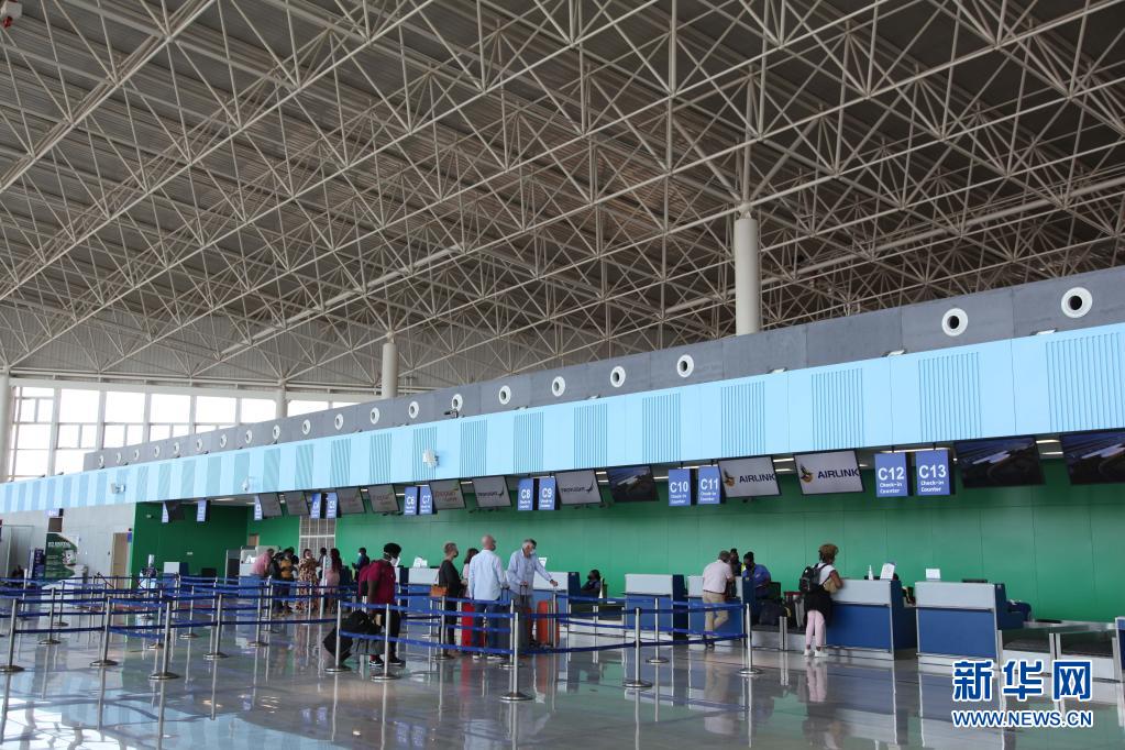 这是8月9日在赞比亚首都卢萨卡拍摄的肯尼思·卡翁达国际机场新航站楼内景。