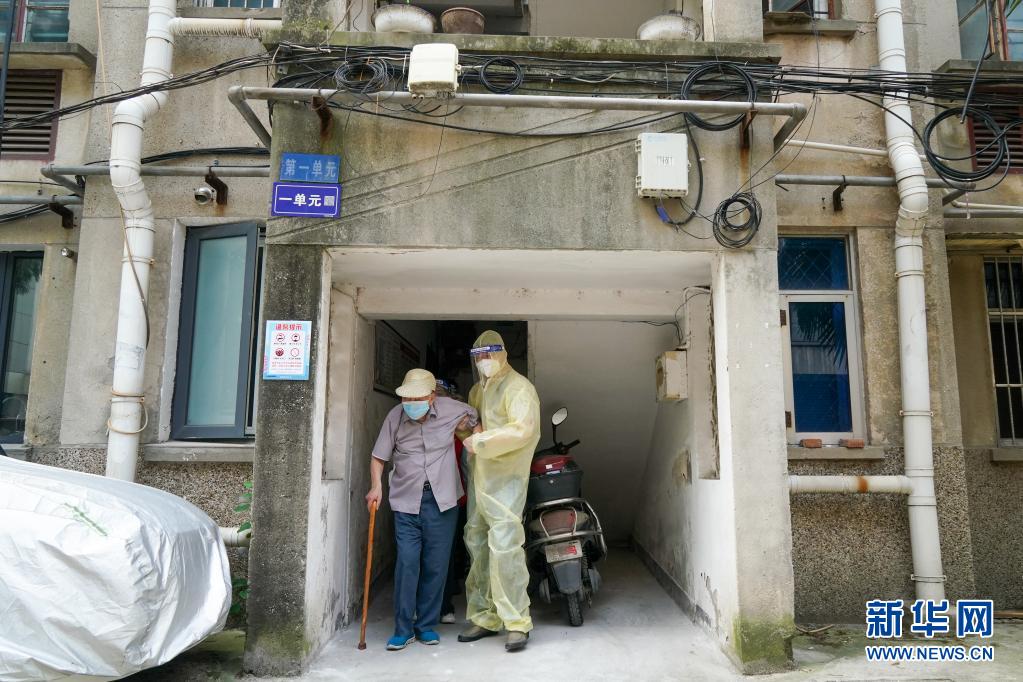 据介绍,四望亭社区共有居民2000余人,其中60周岁以上老年人约占22%。当地开设绿色通道和老年人服务专场,并成立了由2名网格长和4名志愿者组成的助老轮椅小分队,帮助老年居民外出进行核酸检测取样。