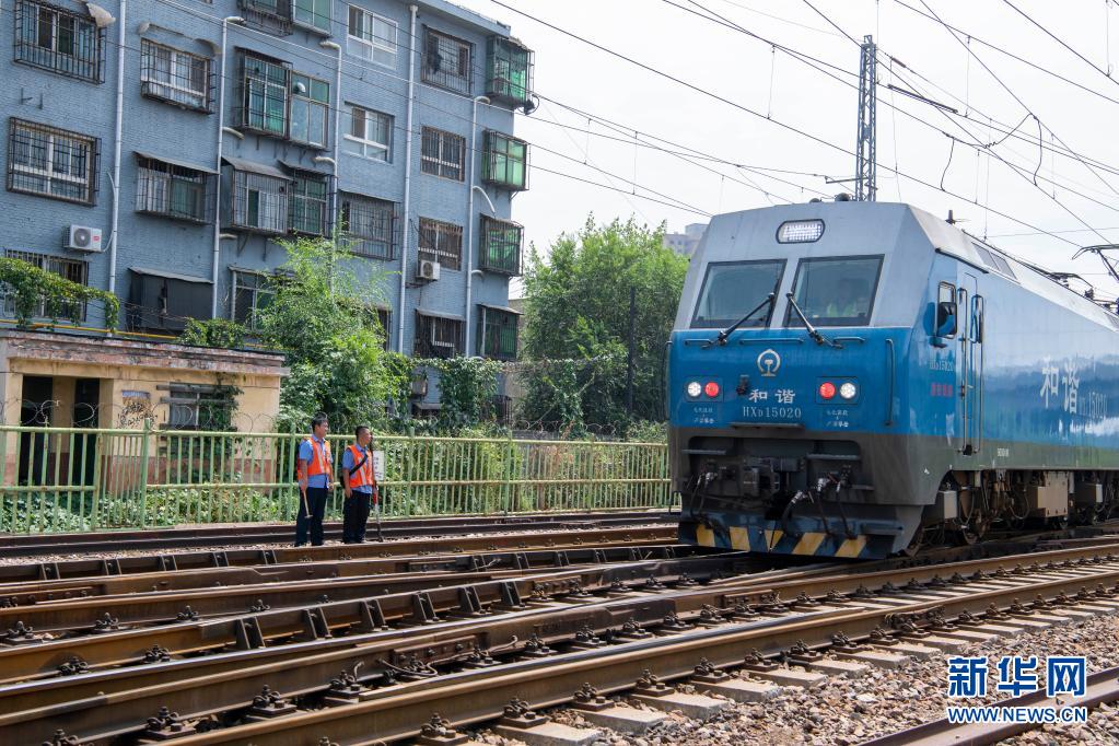 8月11日,在南同蒲线运城站,李宁(右)和同事王大卫等待列车经过。