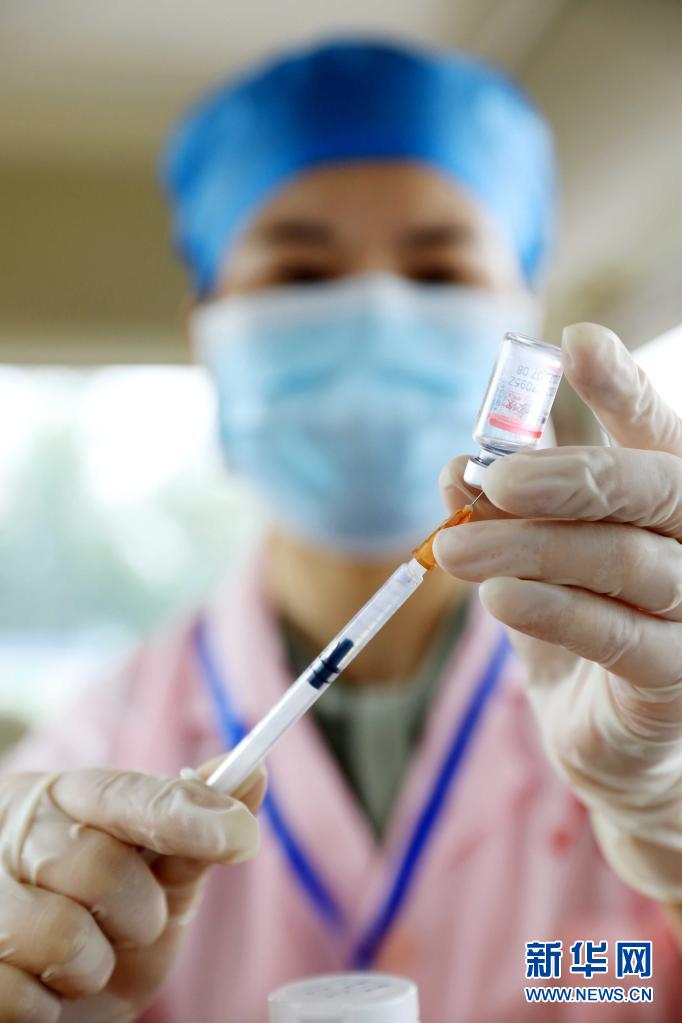 8月12日,在广西融安县长安镇安宁村大袍屯,疫苗接种流动车上的医务人员准备给村民接种疫苗。