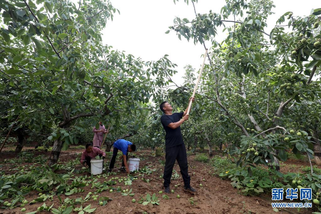 8月13日,农户在河北省石家庄市赞皇县榆底村采收核桃。