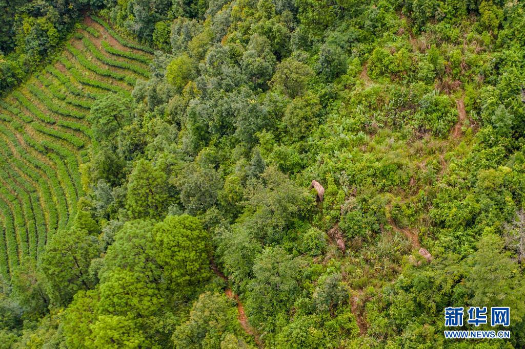8月13日在云南省普洱市墨江县境内拍摄的象群(无人机照片)。