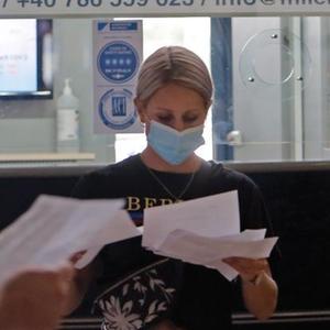 8月13日,一名女子在罗马尼亚首都布加勒斯特附近的亨利·科安德国际机场出示其带有二维码的欧盟数字新冠通行证。