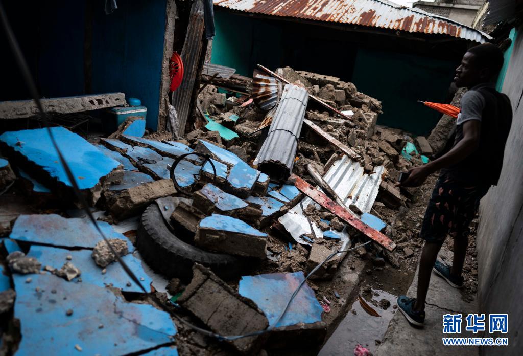 8月17日,一名男子在海地莱凯查看一处房屋废墟。