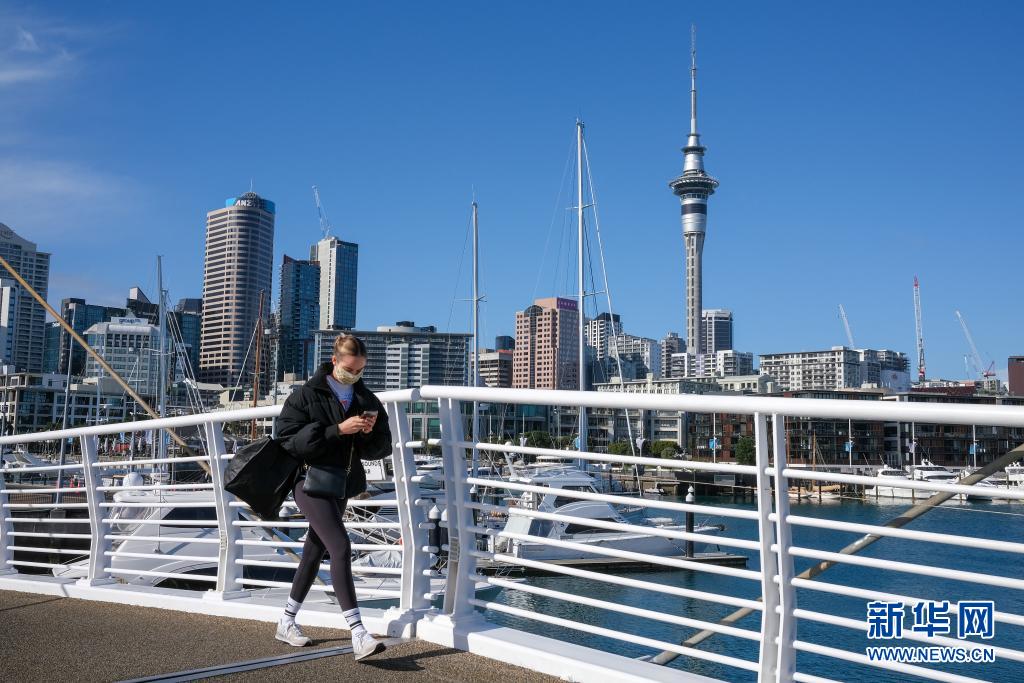 8月18日,一名戴着口罩的女子从新西兰奥克兰街头走过。