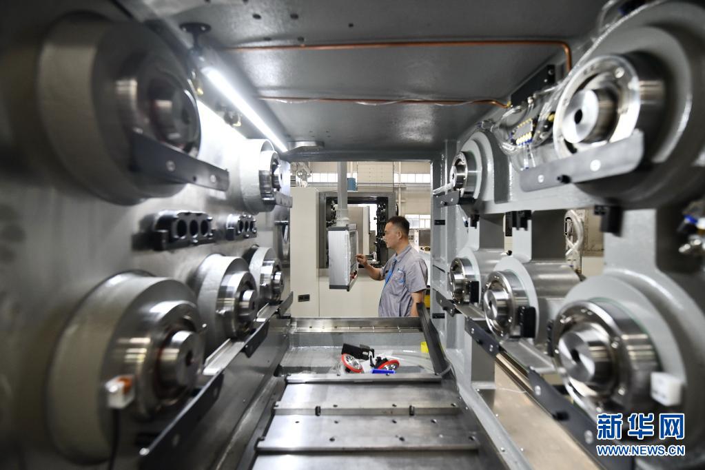 8月19日,位于玉田县的唐山晶玉科技股份有限公司工人在高精密多线切割机生产线上调试设备。