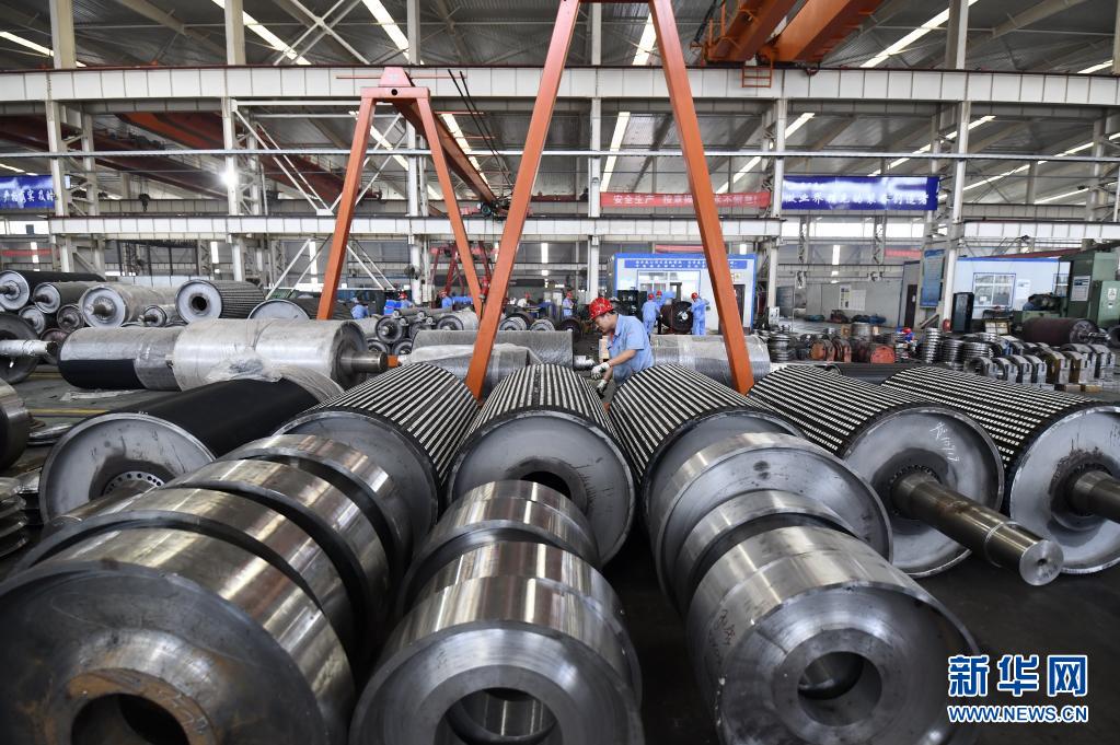 8月19日,位于玉田县的唐山东亚重工装备集团有限公司工人在查验大型传输设备零部件。