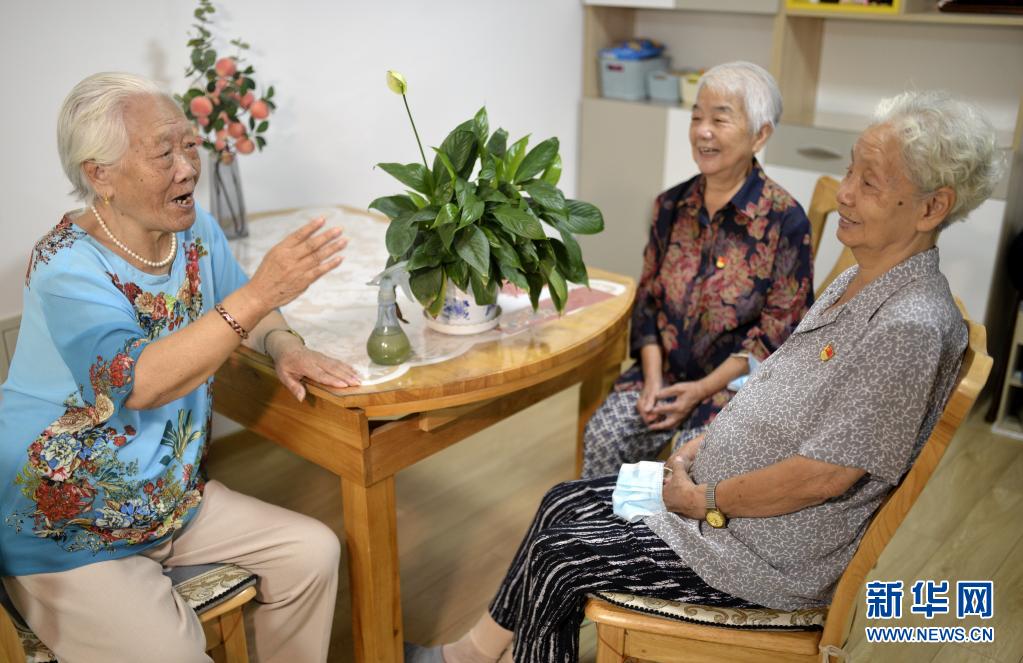 8月19日,86岁的老党员臧树坤(右一)和82岁的老党员杜淑琴(右二)走访社区内的独居老人李作英。臧树坤和杜淑琴参加了社区为老服务队,多年来她们坚持走访社区内的独居老年人,了解他们的生活和身体状况,及时反馈给社区和街道。