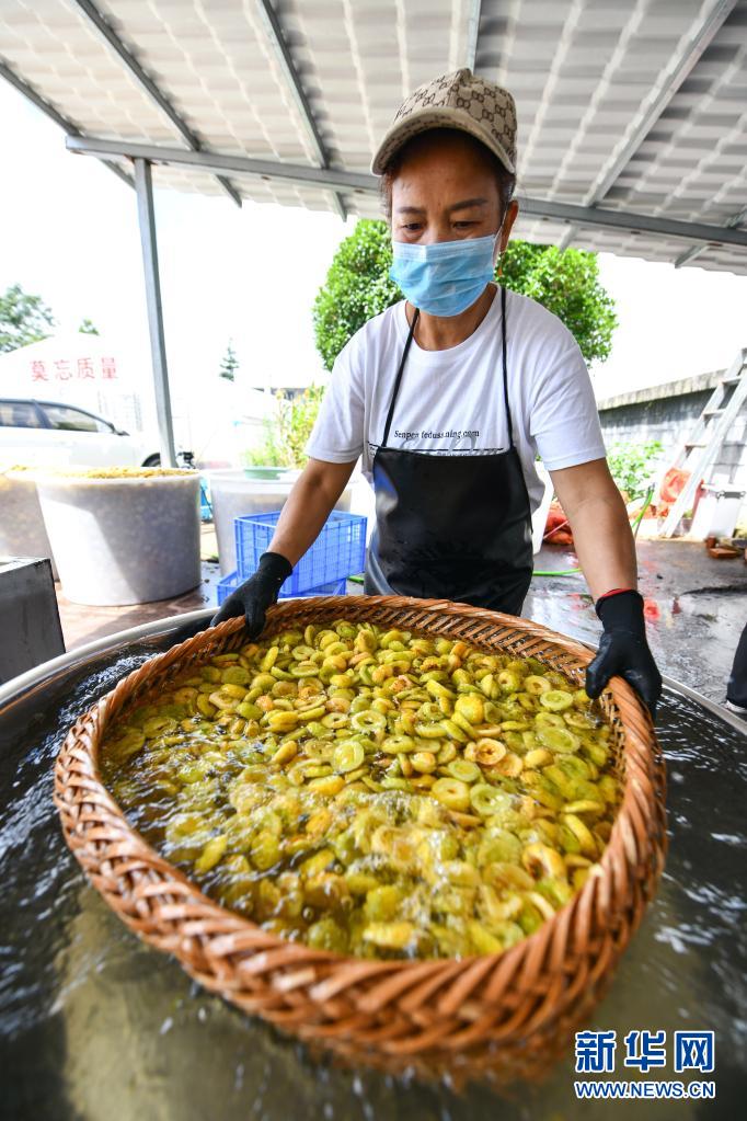 8月18日,在贵州省龙里县谷脚镇高堡村股份经济合作社,农民在清洗刺梨鲜果,准备制作刺梨果脯。