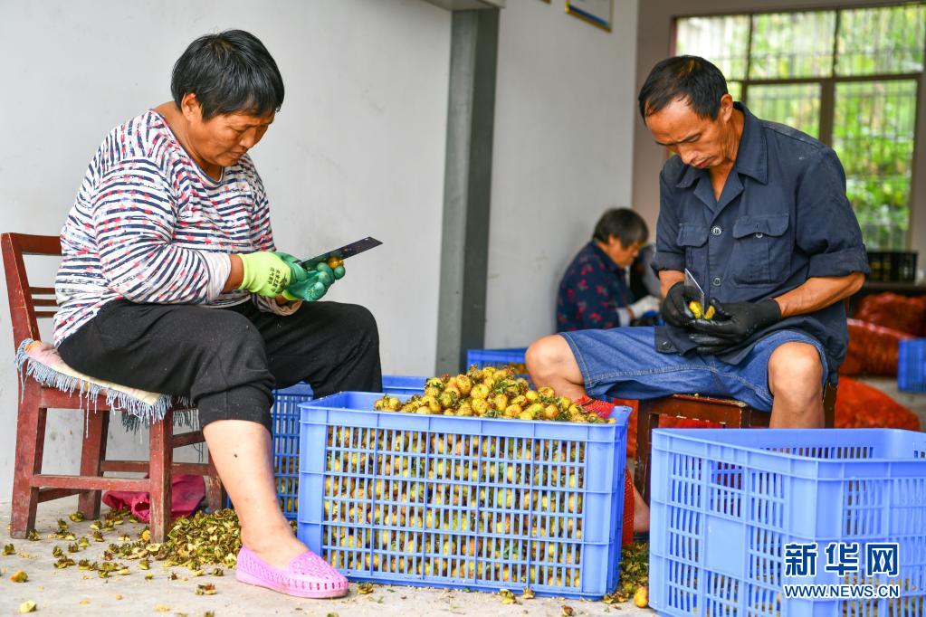 8月18日,在贵州省龙里县谷脚镇高堡村股份经济合作社,农民在清理刺梨鲜果。