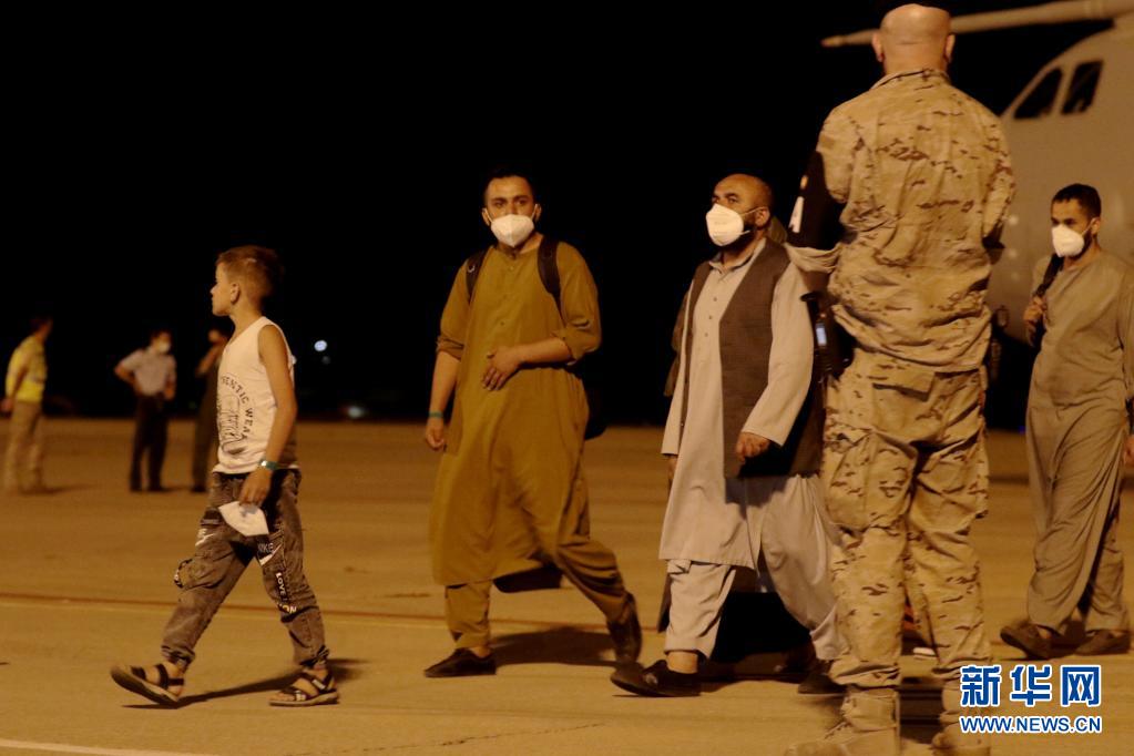 8月19日,西班牙首批撤出阿富汗人员在马德里走下飞机。