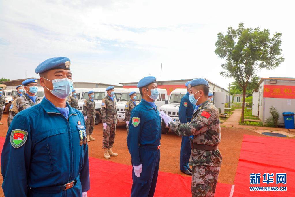 8月19日,中国首批赴阿卜耶伊维和直升机分队官兵出席授勋仪式。