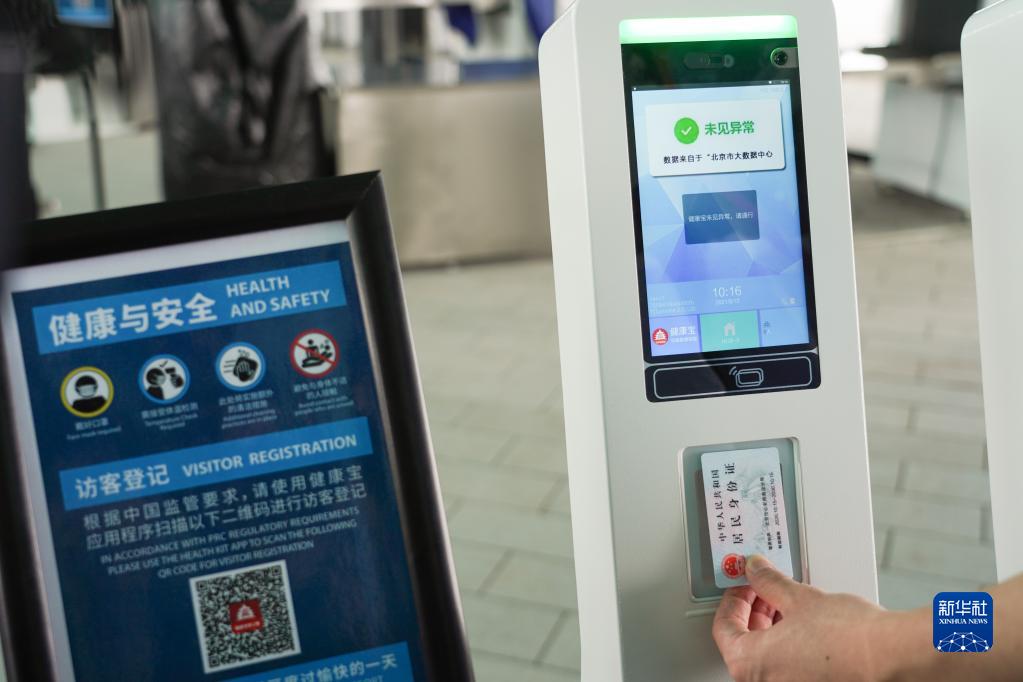 这是8月13日拍摄的北京环球度假区安检入口处的健康宝智能查验终端。