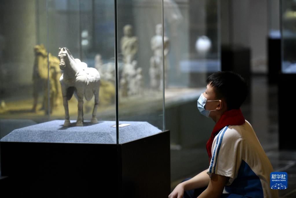 8月20日,在河北省临城县邢窑博物馆,学生在参观藏品。