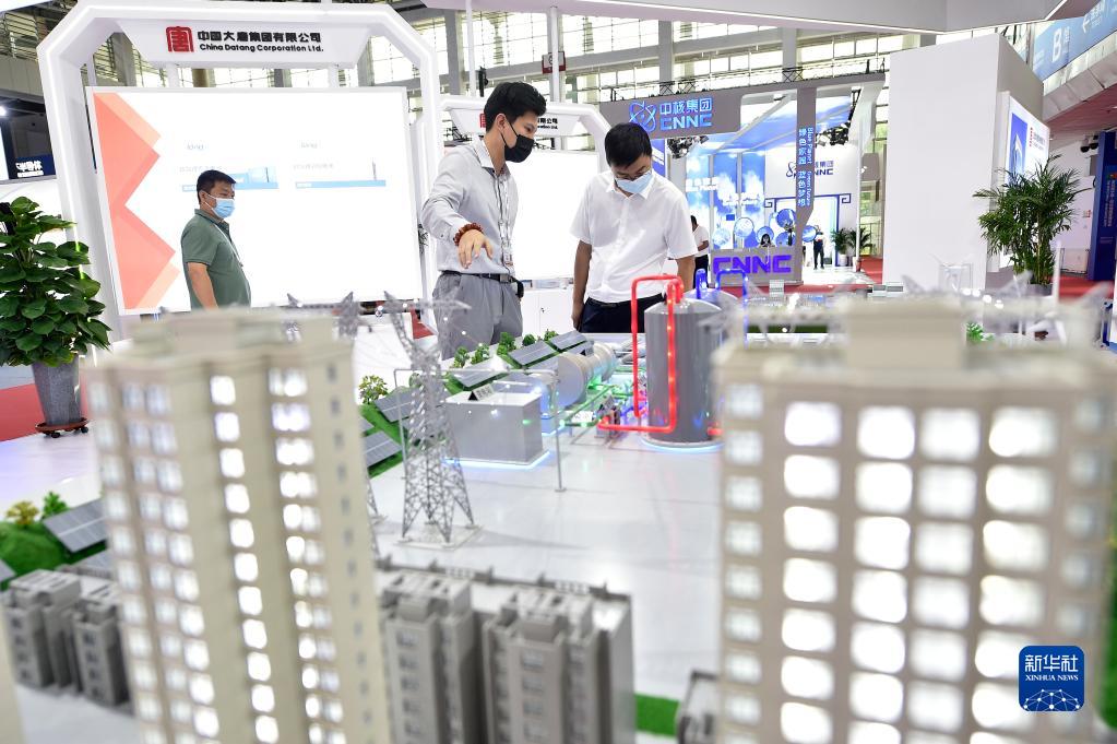 8月20日,参展商在中阿博览会银川国际会展中心展区了解储能系统模型。