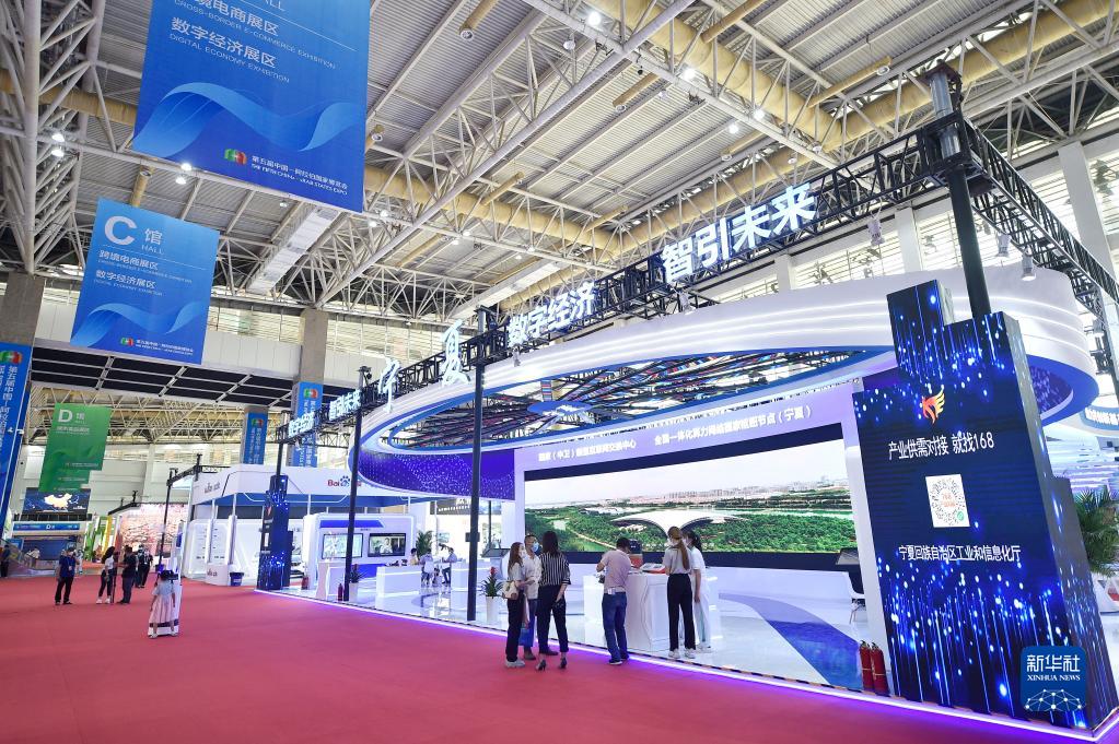 8月20日拍摄的中阿博览会银川国际会展中心跨境电商、数字经济展区。新华社记者 王鹏 摄
