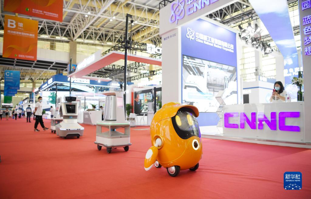 8月20日,在中阿博览会展览现场,机器人“列队行进”。新华社记者 王鹏 摄