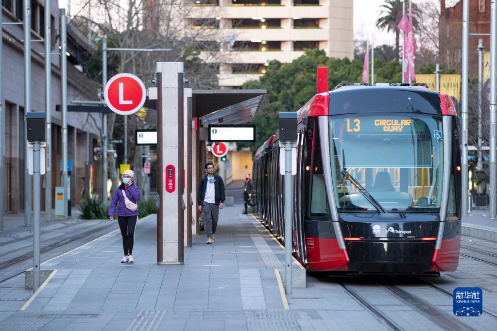 8月20日,乘客走在空荡的澳大利亚悉尼轻轨站。