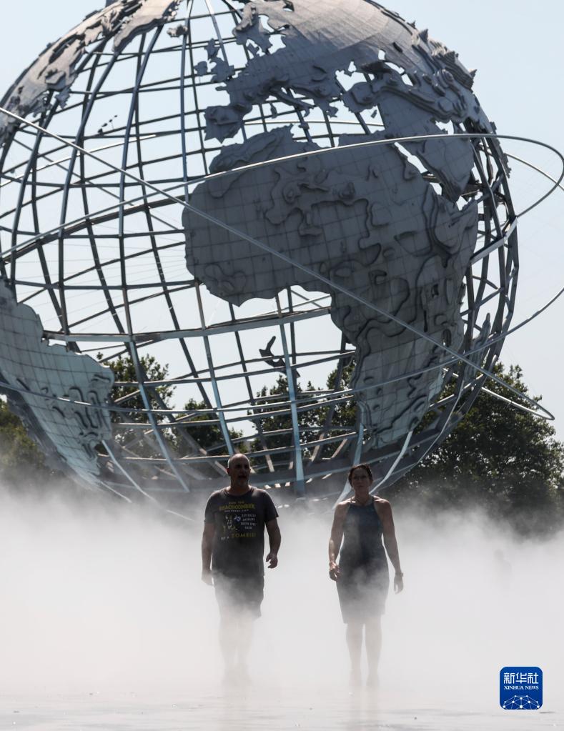 8月13日,人们走过美国纽约科罗纳公园的水雾广场。