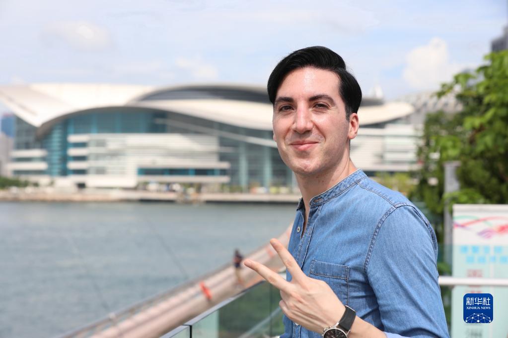 斯特凡诺·德莱尔巴在香港岛海边接受新华社记者专访(8月11日摄)。