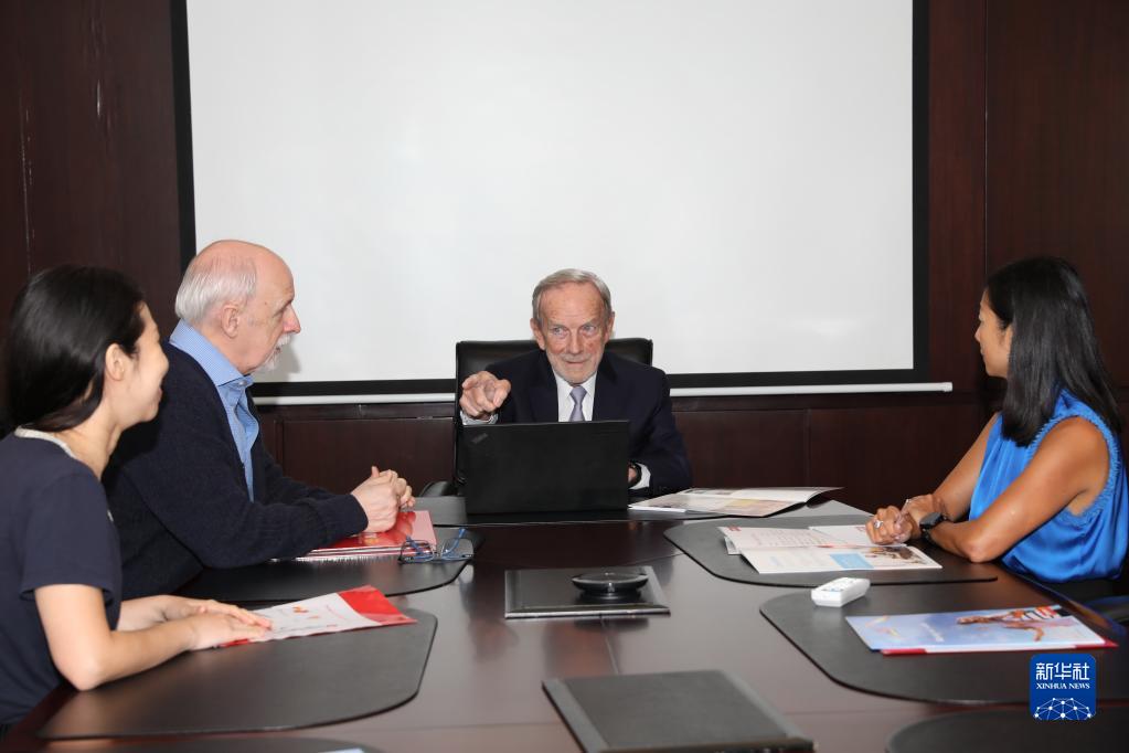 詹姆斯·汤普森(右二)在香港的公司开会(8月12日摄)。