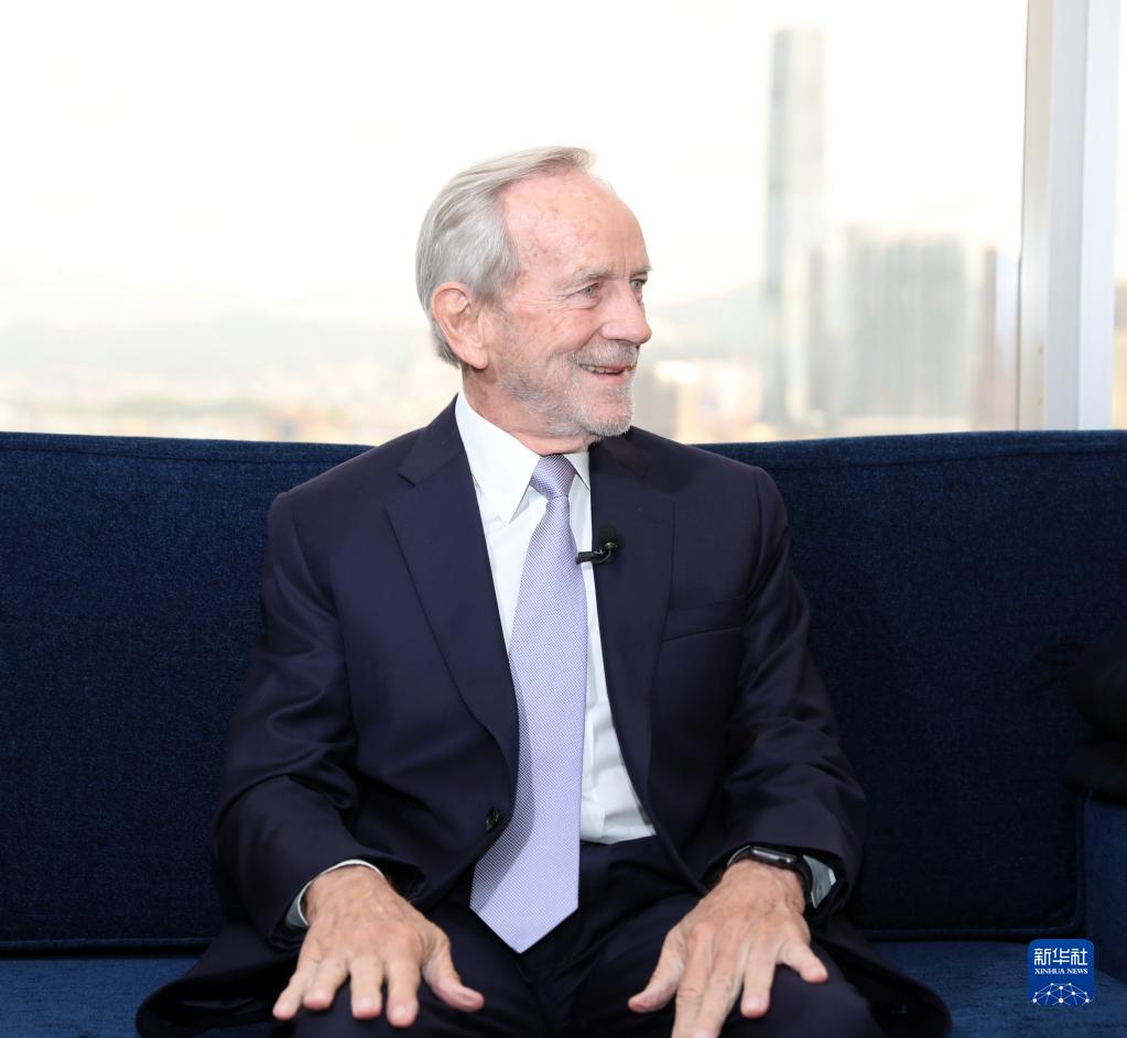 詹姆斯·汤普森在接受新华社记者专访(8月12日摄)。