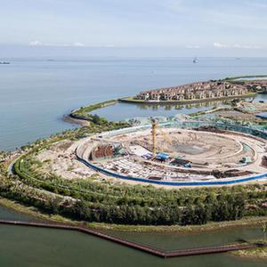 这是8月21日拍摄的海口湾“天空之山”项目工地(无人机照片)。