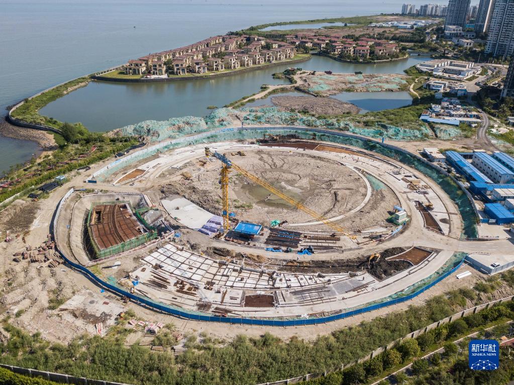 这是8月21日拍摄的海口湾“天空之山”项目工地(无人机照片)。