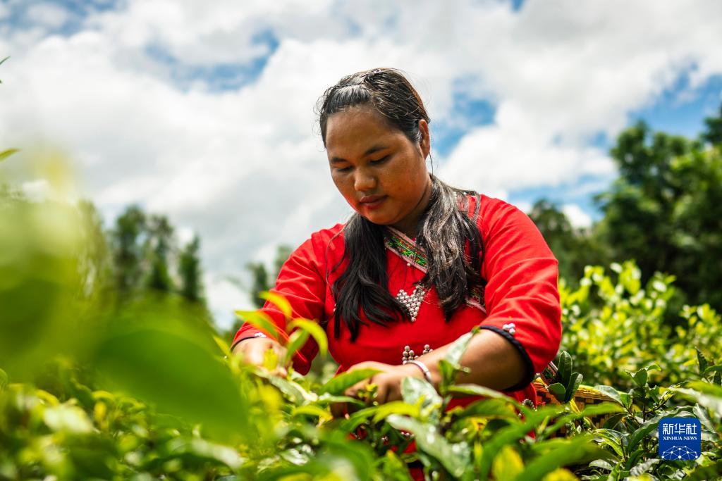 8月20日,云南省沧源县班洪乡班洪村村民在采茶。新华社记者 江文耀 摄
