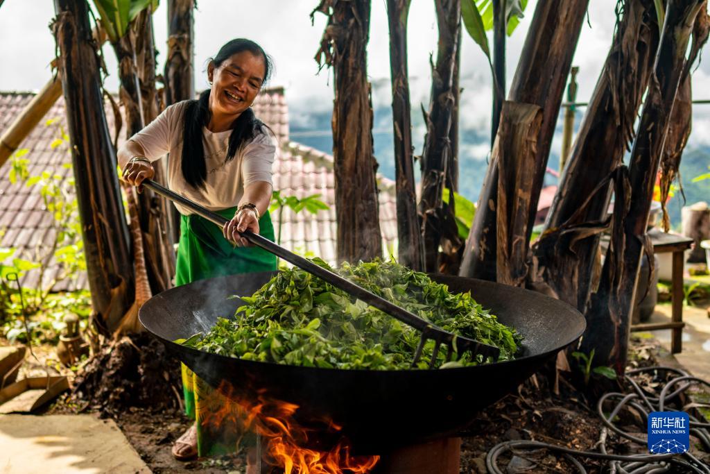 8月20日,云南省沧源县班洪乡班洪村村民在炒茶。新华社记者 江文耀 摄