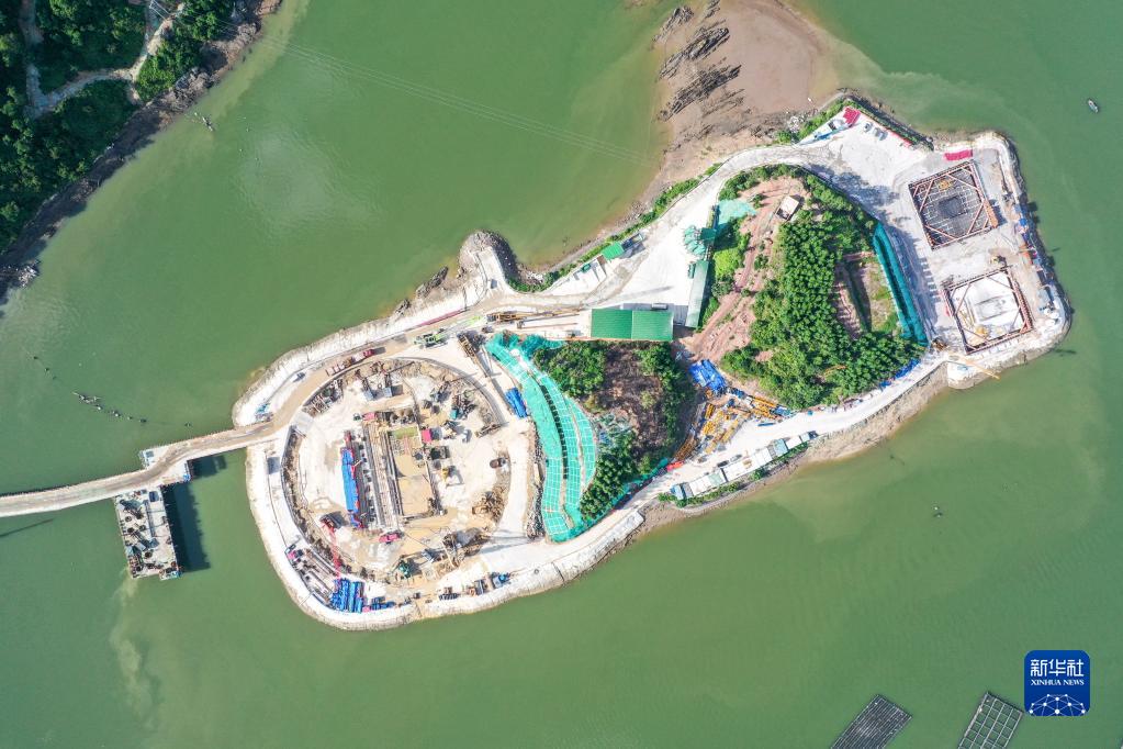这是广西龙门大桥东岸塔锚施工现场(8月21日摄,无人机照片)。