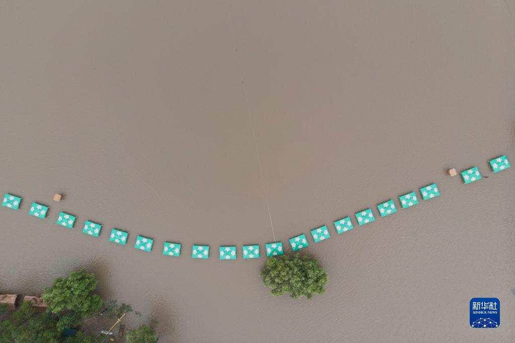 这是8月21日拍摄的哈尔滨市松北区上坞沙滩浴场被水淹没的部分设施(无人机照片)。