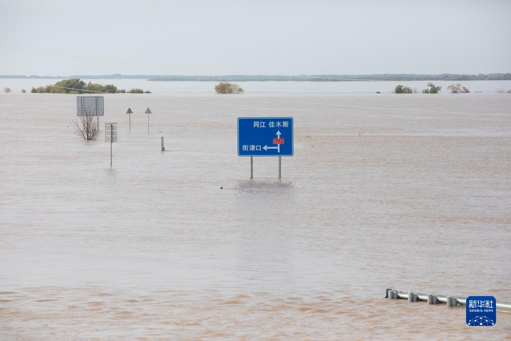 8月17日,黑龙江省同江市三村镇三村至哈鱼岛部分路段被水淹没。
