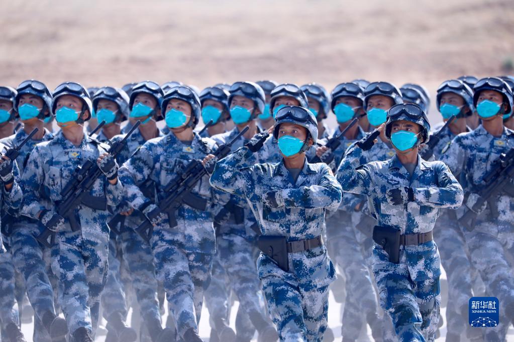 8月13日在“西部·联合-2021”演习结束仪式分列式上拍摄的空军空降兵方队。