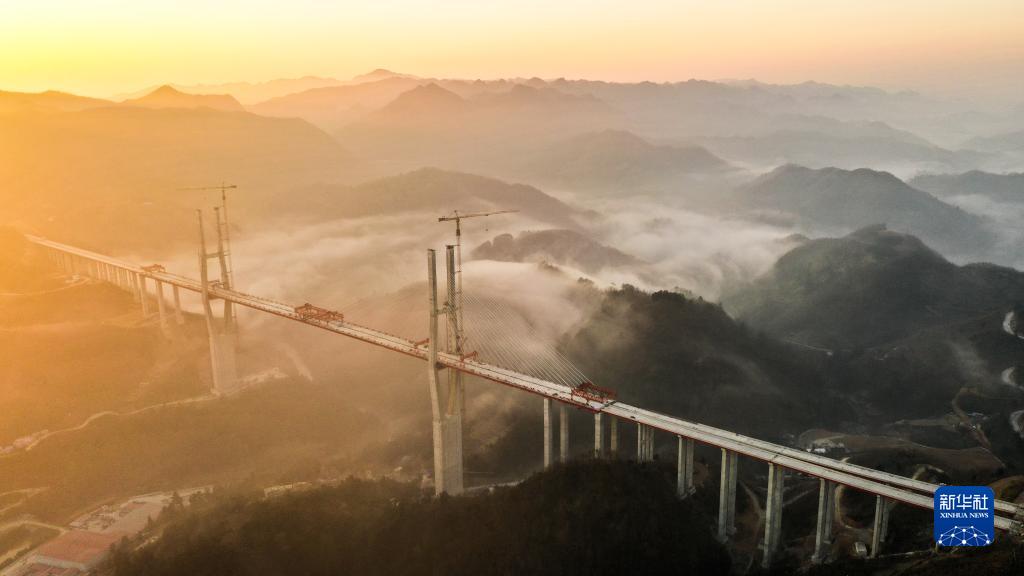 这是贵州都匀至安顺高速公路云雾大桥合龙场景(1月18日摄,无人机照片)。
