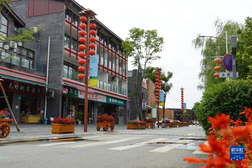 成都市郫都区战旗村村口的商铺(8月8日摄)。