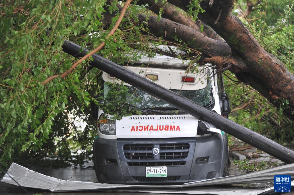 8月21日,在墨西哥韦拉克鲁斯州波萨里卡,一辆救护车被倒下的树木压住。